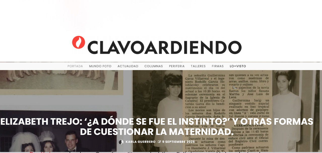 El pasado 9 de septiembre Karla Guerrero realizo una reseña de mi más reciente fotolibro , aqui un extracto del texto: Aqui pueden leer la nota completa : https://clavoardiendo-magazine.com/mundofoto/fotolibros/elisabth-trejo